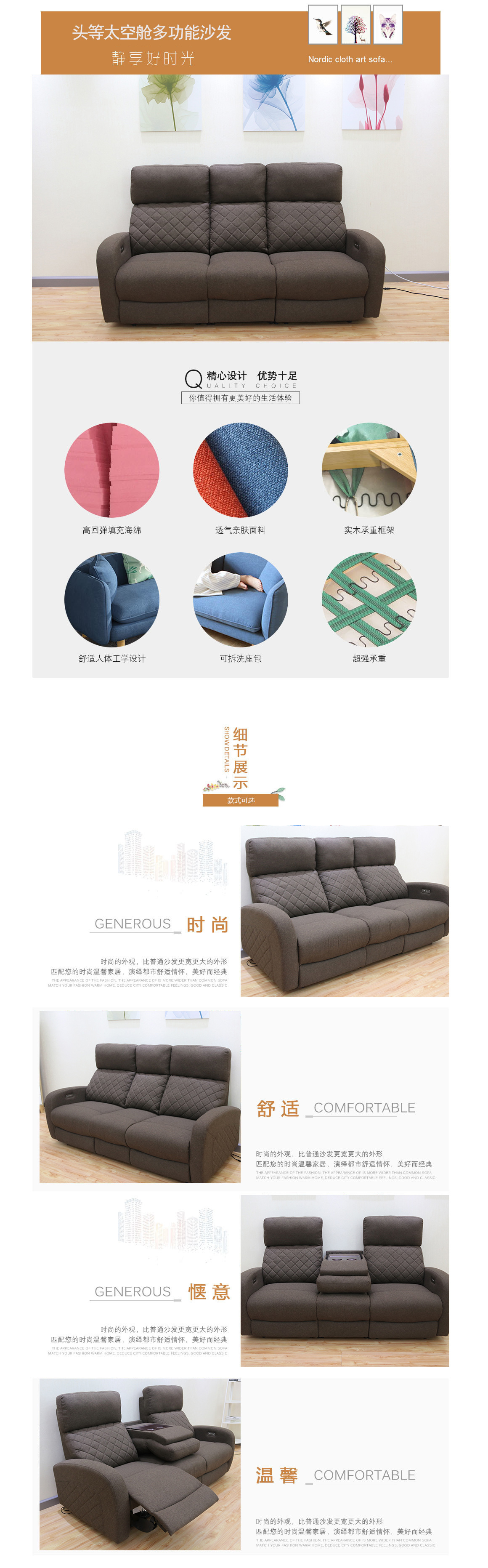 电动开关,轻轻一按,可以调节到您最舒适的靠背角度,坐睡躺任意变换