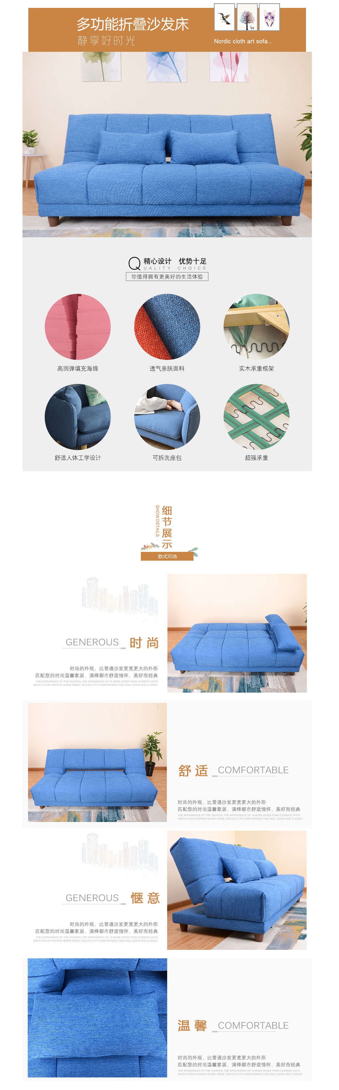 能当作床睡的沙发,一张沙发多种用途;填充饱满,高密度海绵,久坐不塌;