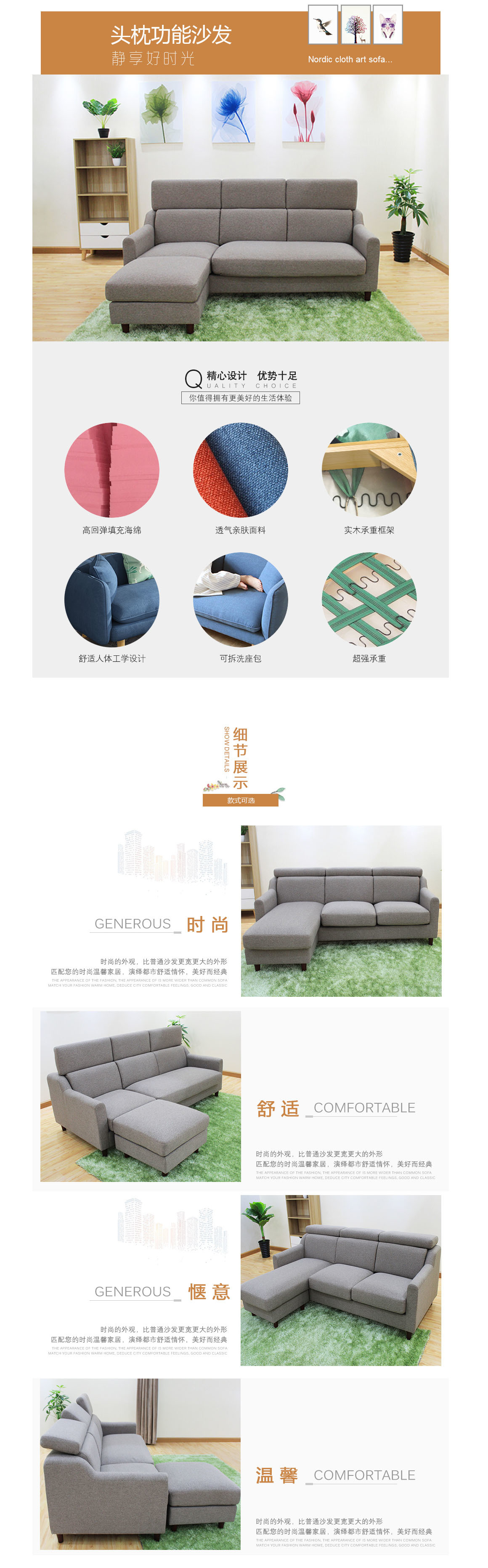 头枕功能,可随意调节;脚踏与3人位搭配自由;