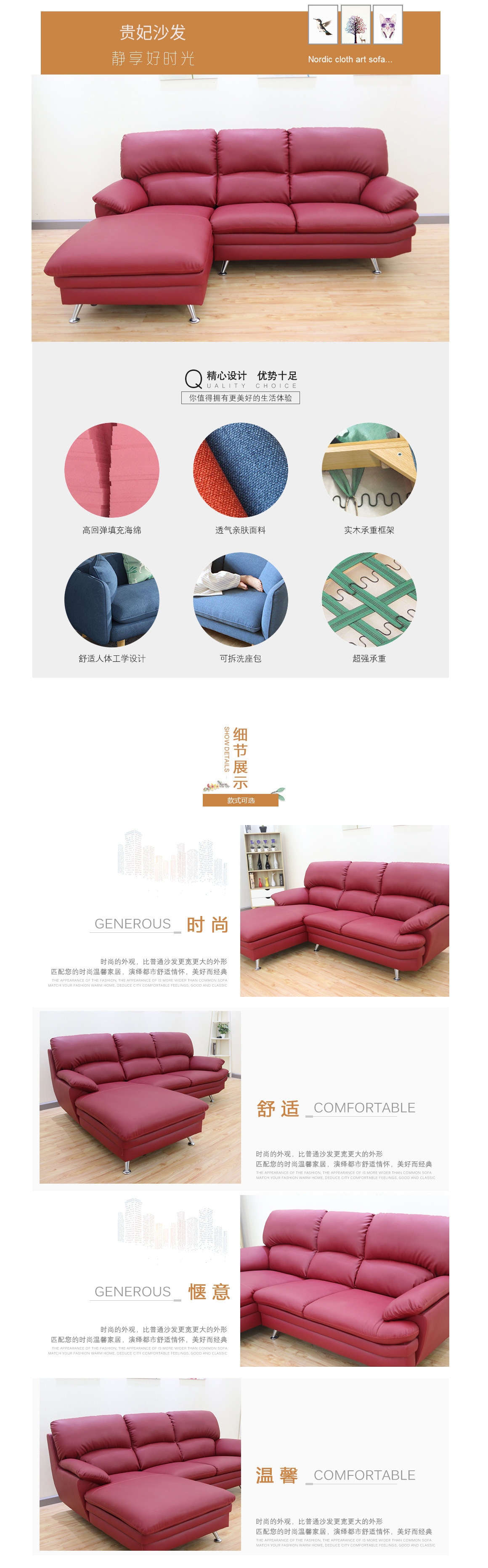产品特性:随意组合,多种用途,填充饱满,高密度海绵,久坐不塌;